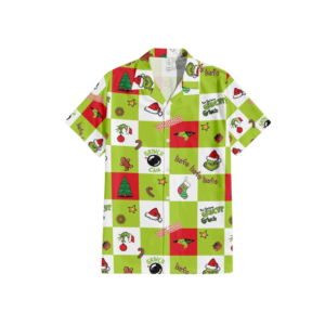 Grinch and a Colorful Christmas Button Up Shirt