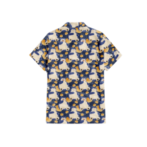 Regular fit Hawaiian shirt and short with Snorlax pattern print. Cuban collar, full front coconut button closure with short sleeves.
